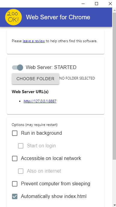 오늘은 이렇게 크롬 웹서버 소프트웨어로 간단하게 웹서버 운영하는 법을 배웠습니다.