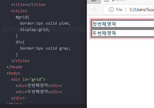 첫번째영역과 두번째영역을 div id="grid" 로 묶어줍니다.