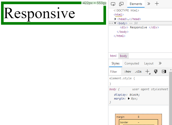 간단하게 웹페이지를 하나 만들고, responsive라는 div를 하나 만들어 줍니다.