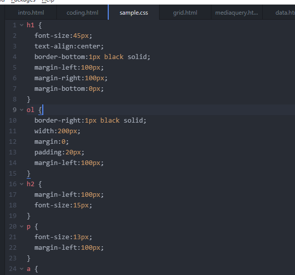 지난번에 사용했던 css 부분을 그대로 따와서 sample.css 파일을 만들어보겠습니다.