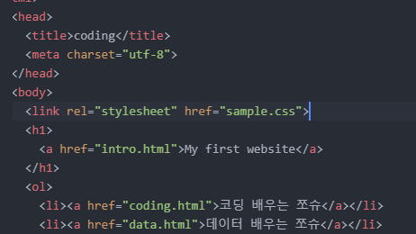 그리고 이렇게 만든 css 파일과 html 파일을 연결해 주면 됩니다.