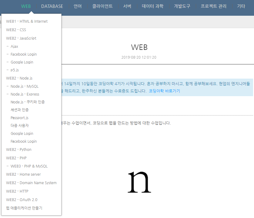 무엇부터 할까 고민을 했는데 그냥 순서대로 쭉 다 하려구요! 제일 먼저 진행할 내용은 WEB입니다.