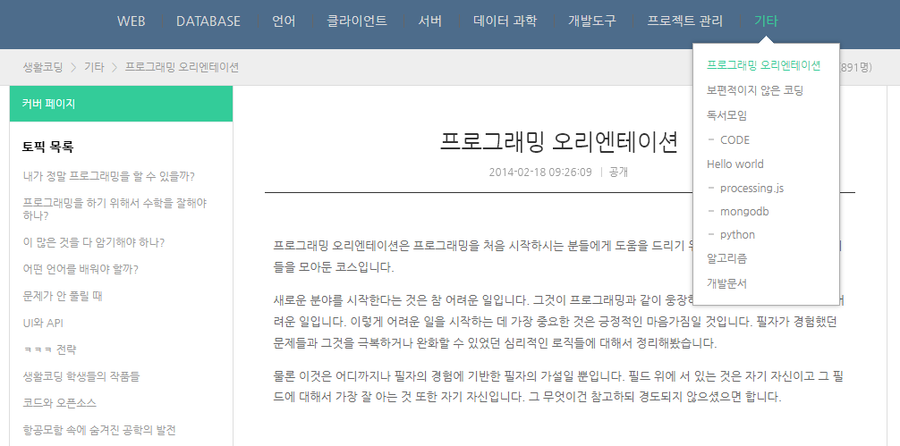 안녕하세요, 오늘은 일반인 무료 프로그래밍 수업을 들을 수 있는 생활코딩을 소개하려고 합니다.