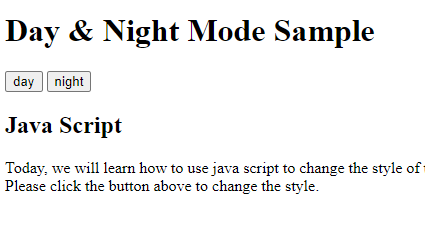 night 버튼을 누른 후 day 버튼을 누르면 다시 흰 배경에 검정 글씨로 되돌아오네요.