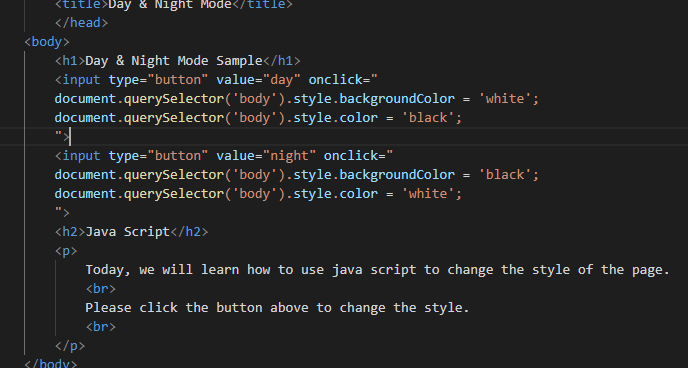 우리도 나이트 버튼과 데이 버튼을 만들고, 버튼을 누르면 모드가 변경되게 해봅시다.