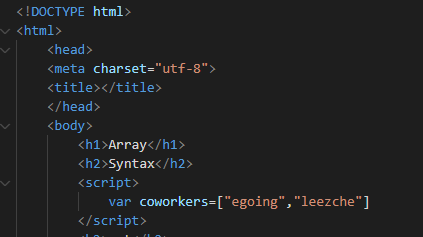 먼저 배열(Array)이라는 사이트를 생성해서 그 안에 배열을 넣어 봅시다.