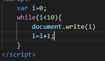 변수 i를 0으로 지정한 후, i가 10보다 작으면, i를 적게끔 만들었습니다.