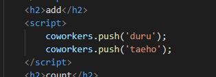 push로 두루와 태호를 추가한 후 count를 해보면 총 아이템 수가 4개로 늘어난 것을 알 수 있습니다.