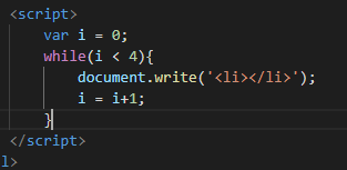변수 i를 지정해주고, while을 사용해서 0부터 4까지 4번 반복합니다.