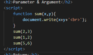 우리가 위에서 만든 함수 sum의 경우, 함수 자체에 document.write이 포함되어 있었습니다.