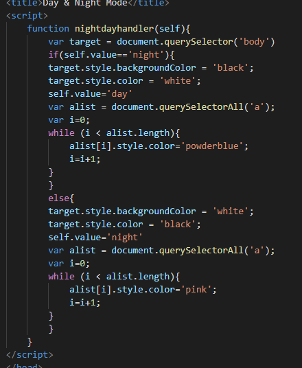 nightdayhandler라는 새로운 함수를 head에 만들어 놓고, 버튼의 onlick 부분에 넣었던거 기억나시나요?