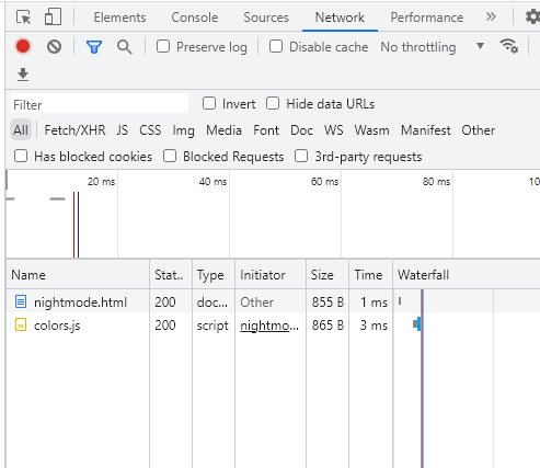 웹페이지 inspection 에서는 network 부분에서 어떤 페이지를 참고하고 있는지 확인이 가능합니다.