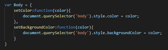 이렇게 묶어서 정리하면, 나중에 사용할 때에도 Body.setColor 혹은 Body.setBackgroundColor 을 이용하면 편리하겠죠.